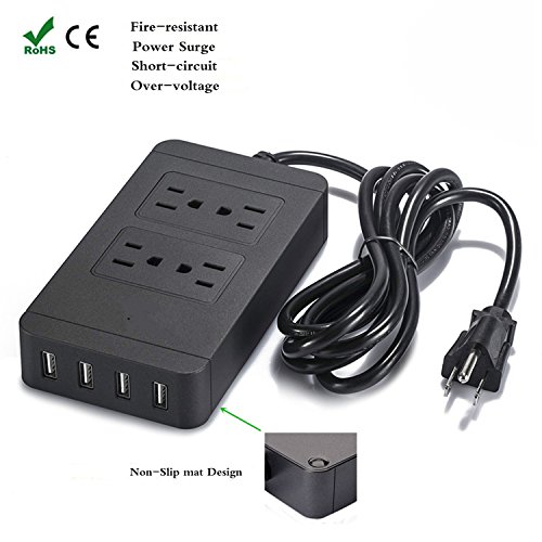Multiple USB Charger, INNLIFE 4 Port USB Charging station with 1700J 4 AC Surge Protected Outlets Power Strip for Smartphones and Tablets (Black)