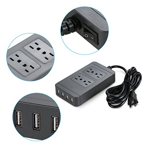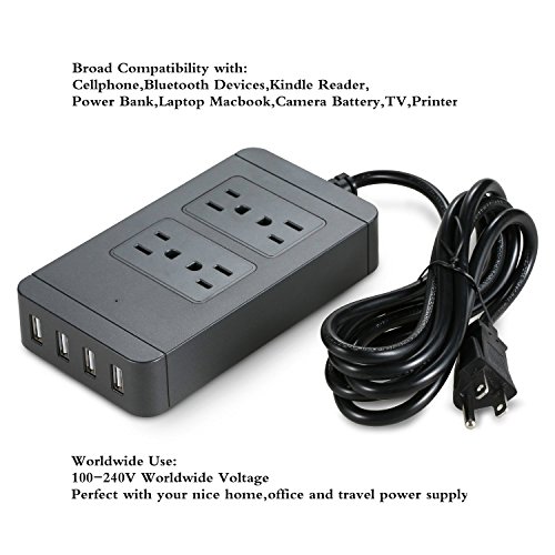 1.Multifunctional Power Strip:Slim designed Travel Charging Station has enough power outlets to handle all your devices at once. It features 4 outlets and 4 USB ports chargers that let you plug in and charge your cellphones, tablets, laptops, digital cameras and other USB devices at the same time.