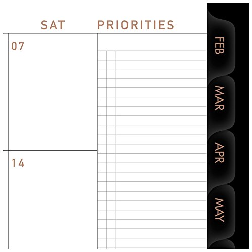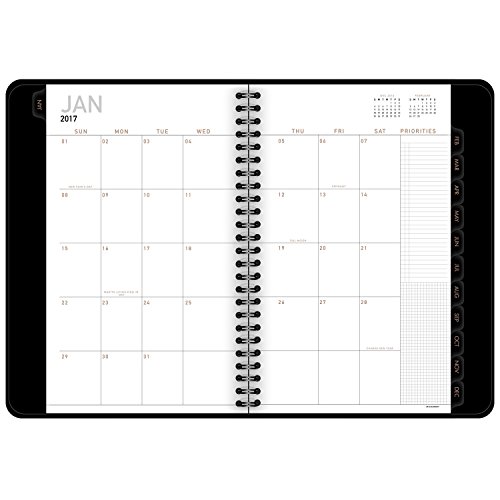 -. Feature : Contemporary weekly / monthly planner has a 12 month date range, January - December. Julian dates. / Weekly: one week per two page spread with lined open scheduling for notes and to-do's / Monthly: one month per two page spread featuring unruled daily blocks for marking key dates. Months are tabbed for quick navigation and include reference calendars for date checking.