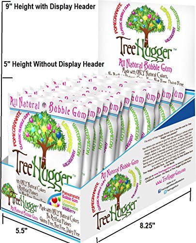 Tree Hugger All Natural Bubble Gum- 2 oz FANTASTIC FRUIT Assortment. NON GMO. No Corn Syrup. Kosher. Vegan. No Artificial Colors. No Artificial Flavors. Gluten Free. Nut Free. Includes: Pomegranate, Classic Bubble Gum, Watermelon, Lemonade & Wildberry. Includes 12 x 2 oz bags.Feature