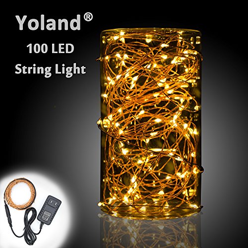 Yoland LED Copper Wire Lights, 33Ft 100LEDS with 12V AC/DC Power Adapter Starry Light, Fairy String light for Christmas, Holiday, Garden, Party, Patio Decor (Warmwhite)
