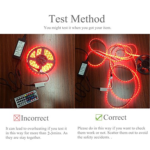 - This is a standard kit. They can only load 16.4ft. Please don't increase the strip light. Come with RGB LED strips, remote controller, AC adaptor . No more accessories are required. Don't leave them on the spool when you going to test it for more than 2 mins, it easy to lead to overheating.The ventilation must be ensured.These lights need an excessive amount of airflow for cooling.