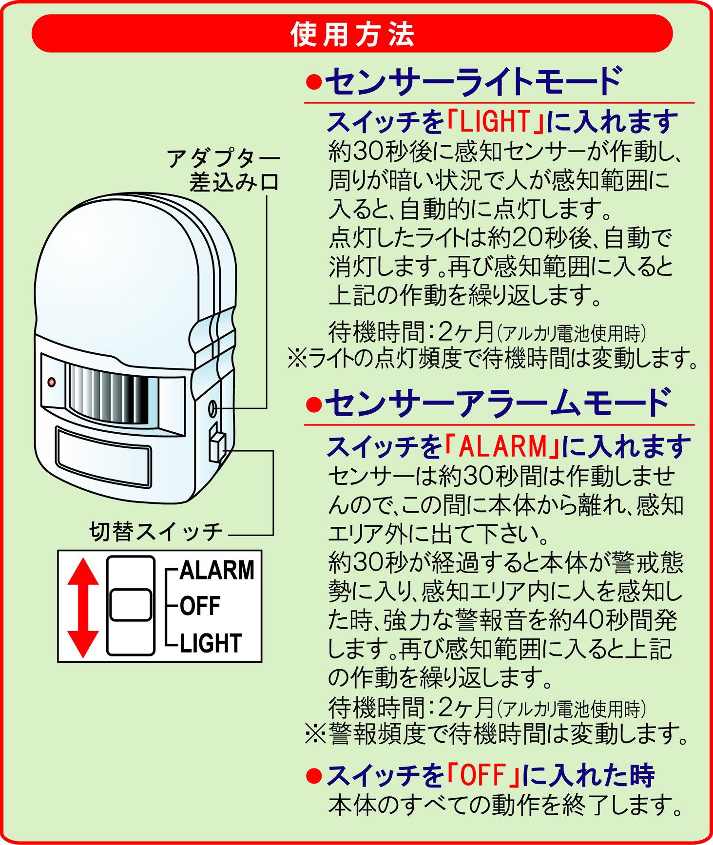 When the high-sensitivity sensor senses a person, the alarm sounds an alarm immediately and repels the bad guy.