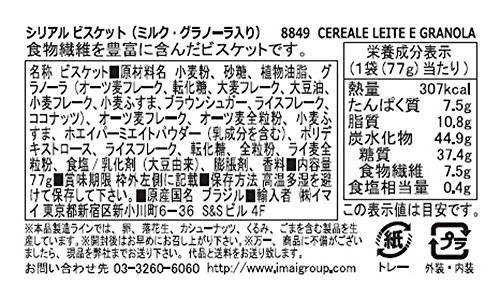 原材料:小麦粉、砂糖、植物油脂、グラノーラ(オーツ麦フレーク、転化糖、大麦フレーク、大豆油、小麦フレーク、小麦ふすま、ブラウンシュガー、ライスフレーク、ココナッツ)、オーツ麦フレーク、オーツ麦全粒粉、小麦ふすま、ホエイパーミエイトパウダー(乳成分を含む)、ポリデキストロース、ライスフレーク、転化糖、全粒粉、ライ麦全粒粉、食塩/乳化剤(大豆を含む)、膨張剤、香料