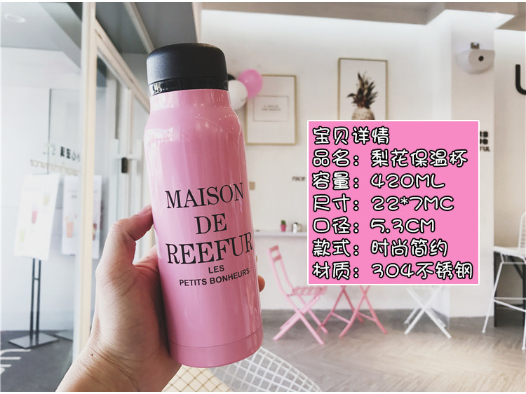 韩国创意梨花保温杯潮流男女士情侣带茶漏车载不锈钢真空学生杯子