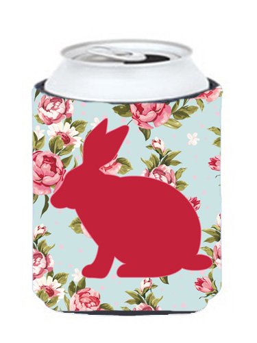 Rabbit Shabby Chic Blue Roses Can or Bottle Beverage Insulator Hugger BB1002
