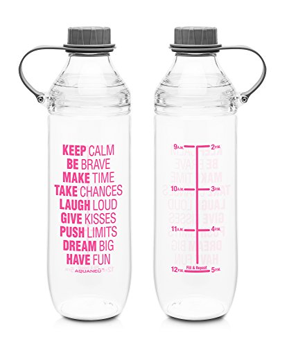 Comfortable and Portable: up to 28 oz inspirational water bottle with threaded dual-opening lid, retaining loop, and silicone strainer, easy to fill and clean and fits in most cup holders.