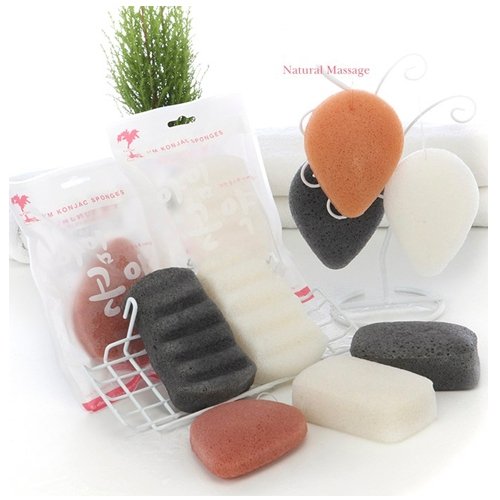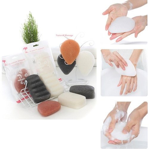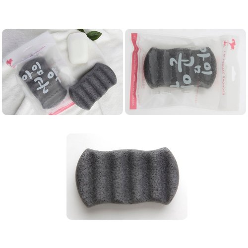 (I'm Konjac)/Makeup Brushes/Tools/Puffs, Sponges Wedges/DIRECT FROM USA/I'm Konjac Sponge 100% Natural Body Sponge with Pure Konjac ,Activated Bamboo Charcoal Pack of 4