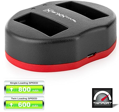 Baxxtar TWIN PORT USB Dual Lader bedeutet: 800mA Ladestrom bei einem eingelegten Akku und 600mA wenn beide Ladeplatze belegt werden. Die Ladebuchten verfugen uber eine separate LED-Anzeige. Sobald der Akku eingesetzt wird, leuchtet es entweder Grun (geladen), oder Rot (Ladevorgang lauft). Wenn der Akku geladen ist, schaltet das Ladegerat automatisch auf Erhaltungsladung!!