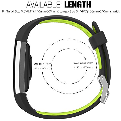 -. Feature : PREMIUM MATERIAL: SKYLET Fitbit Charge 2 Band is made of medical-grade grade rubber, 3-line AIR HOLES, soft and breathable elastic band, comfortable for sporting time, nice replacement for lost or damaged bracelet. / AVAILABLE SIZE OPTION: Small Size: 5.5-8.1 Inches/140-205mm. Large Size: 6.1-9.5 Inches/155-240mm. Precise multiple holes design for you to adjust the bracelet to a suitable length easily. You don't need to worry about the improper size. / OPTIONAL COLORFUL COLOR: Multiple different colors bands for you to choose. Various color bands for you to use for your every outfit every day, makes your life be colorful and full of vigor. / DOUBLE PROTECTION: A stainless steel buckle and a silicone fastener ring can help to keep the band from coming loose and falling off effectively. / CUSTOMER SERVICE: If there is any quality problem or something wrong with the color and size, please don't hesitate to contact us. SKYLET will happy to help you and will resent you a new one.