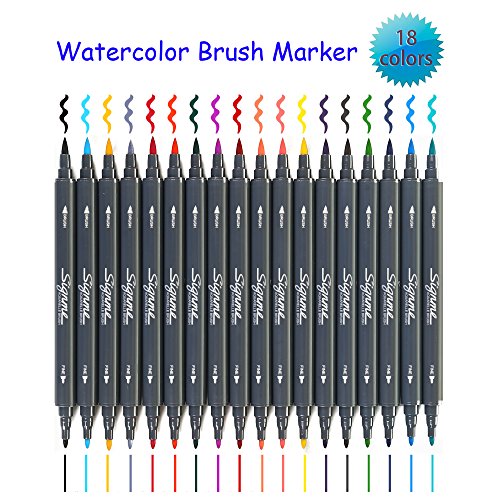 Dual Tip Brush Markers Non-Toxic Water Based Art and Graphic Drawing Manga Sketch Pen 12 18 24 Colors /SET Solitary Walker Signme(18color)