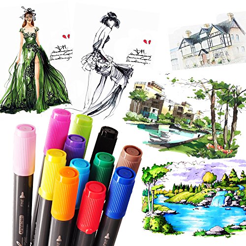 - VIBRANT COLORS:This set contains 12 high quality dual tip flexible nylon brush markers including primary and complementary colors which can be blended together to create your own unique colors