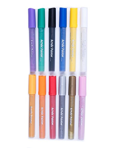 MEEDEN Acrylic Paint Markers Medium Tip Acrylic Pens, 12 Assorted Colors for Glass Ceramic Metal Fabric Stone Wood Painting Crafting