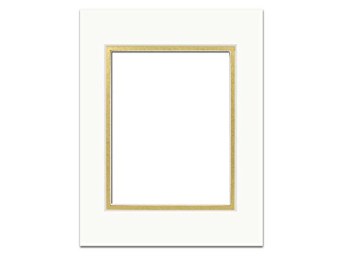 Pre-cut Double Photo Mat Board by Accent Design Cream Core 5 x 7 in. for 3 1/2 x 5 in. Photo Ivory/Gold