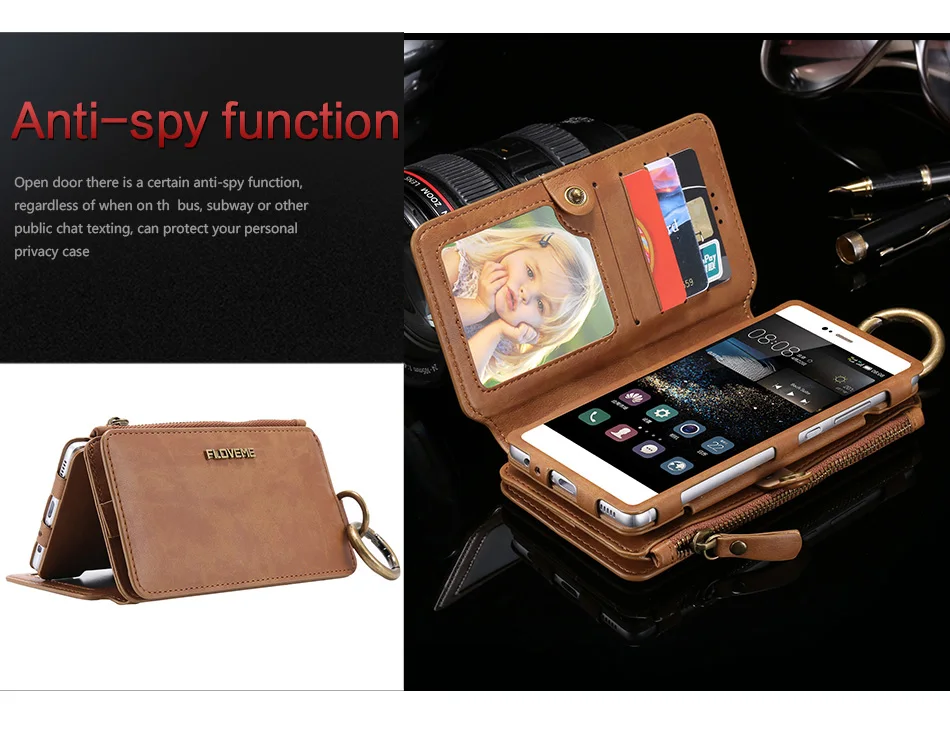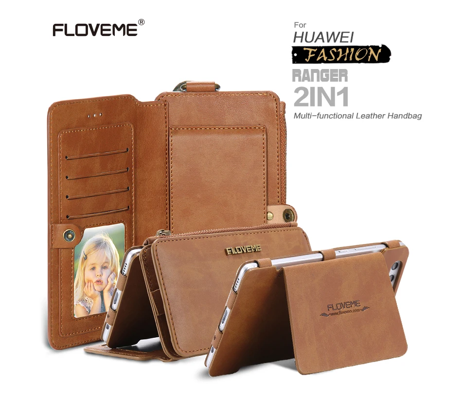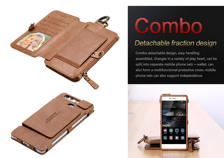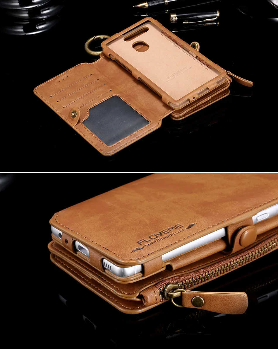 Size:FLOVEME Retro Multi Card Holder Wallet Case For Huawei P9 P10 Mate 9