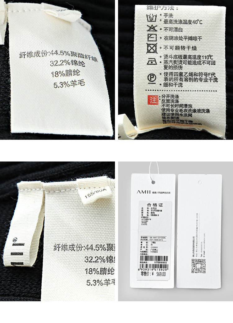 | 面料成分: | 44.5%聚酯纤维,32.2%锦纶,18%腈纶,5.3%羊毛 |