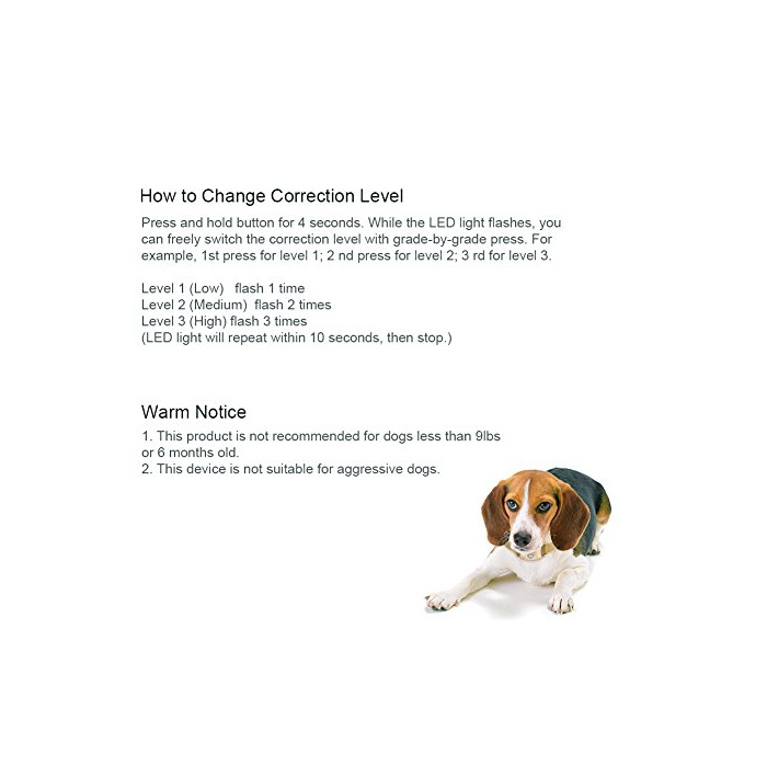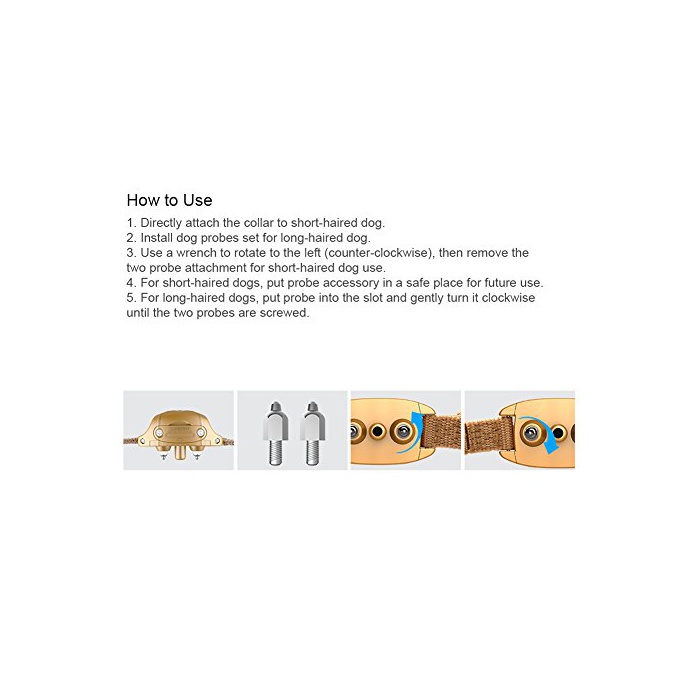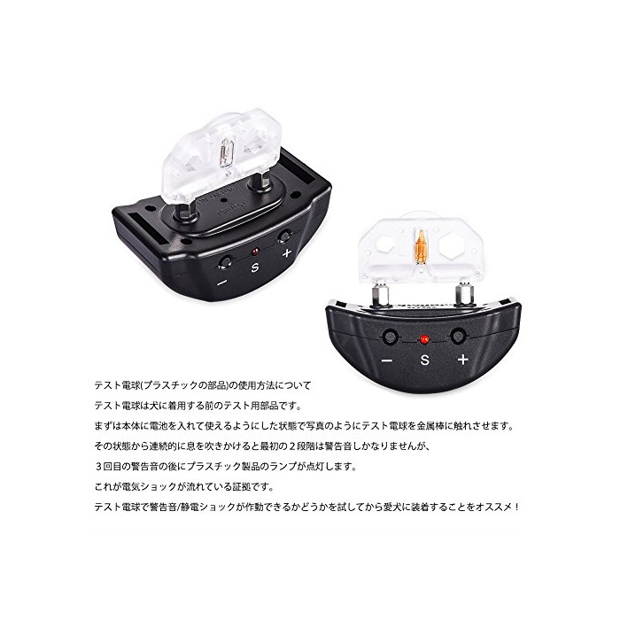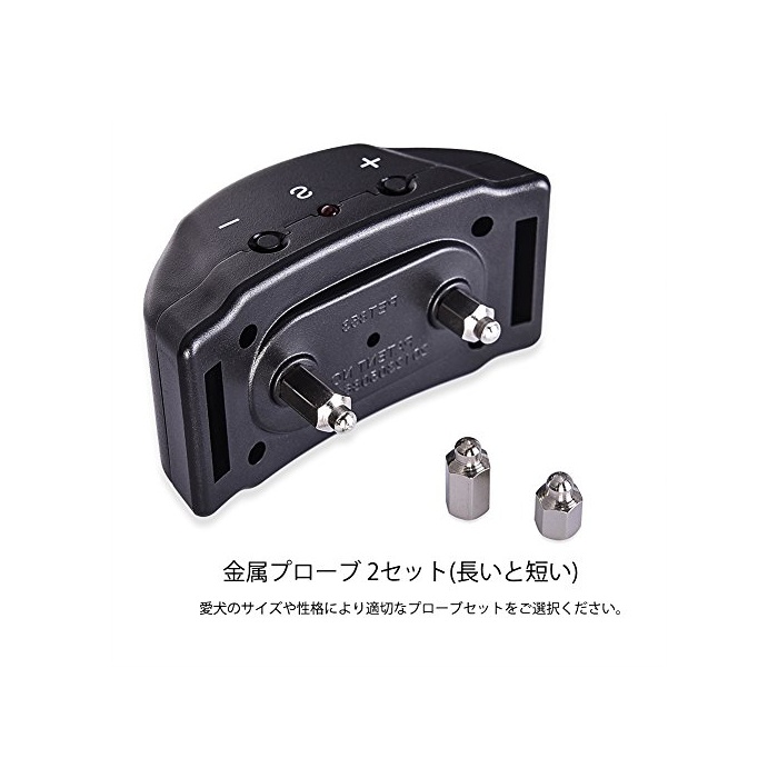 ★센서가 울음소리를 감지하면 자동적으로 경고음 정전쇼크가 작동하고, 애견에 자극을 주는 것에 낭비 짖을 교정합니다.애견의 털의 분량이 많은 또는 긴 경우,작동 효과를 억제한다,장착은 본체의 양방의 probe 세트가 개의 목구멍의 성대의 부분의 피부에 당첨되지 않도록 하는 장착하는 때는,작동 하지 않는, 주의하여 주십시오.