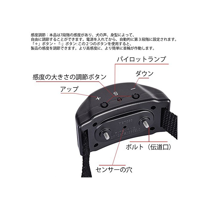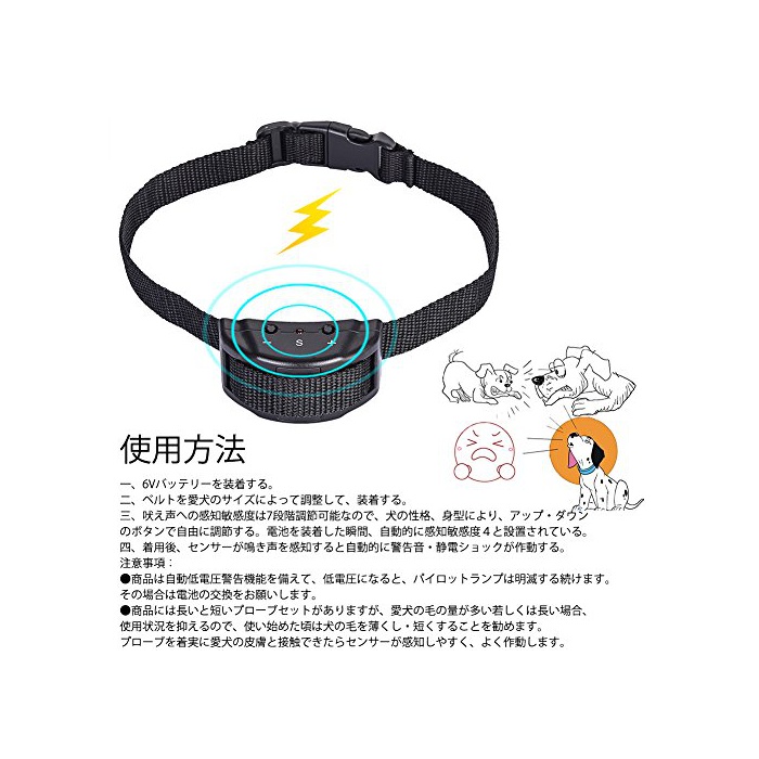원본상품명:Petacc 犬無?吠え防止首輪 犬の訓練首輪 しつけ用首輪 調節可能な警告音と低周波?電?パルス感度で制御 愛犬しつけ用バ?クコントロ?ル 小中大型犬に適用