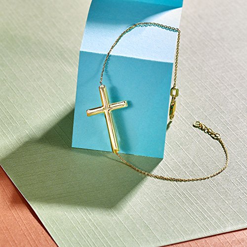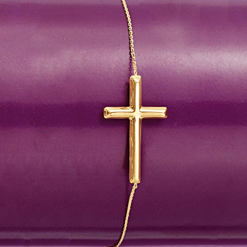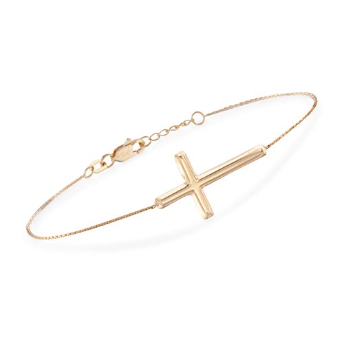Ross-Simons knows what it means to be on the trendsetting side of accessorizing. Make a statement to remember with this stylish sideways cross bracelet. Truly a gleaming expression of faith. The 1" cross is stationed on a cable chain with a 1/2" extender and a lobster clasp. 14kt yellow gold sideways cross bracelet. Each Ross-Simons item arrives in a fine jewelry presentation box. Shop Ross-Simons jewelry risk-free as all items include a 30-day, 100% money-back guarantee.Feature