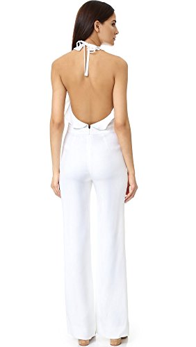Tiered ruffles trim the scoop neckline and frame the open back on this wide-leg Diane von Furstenberg jumpsuit. Hidden back zip. Lined.