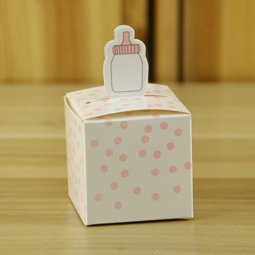 Tongshi Pink Dot Baby Shower Party Favor Boxes Candy Boxes with Baby Bottle Design, Set of 50