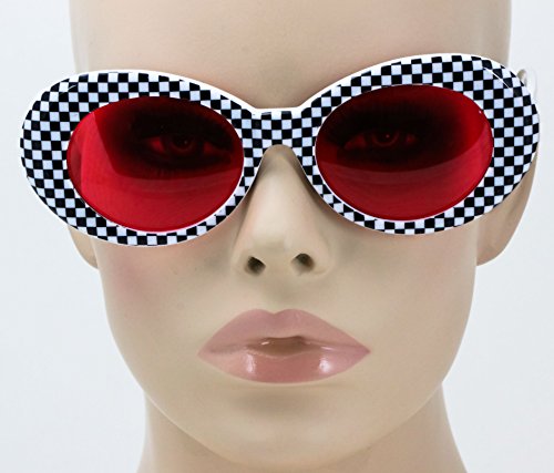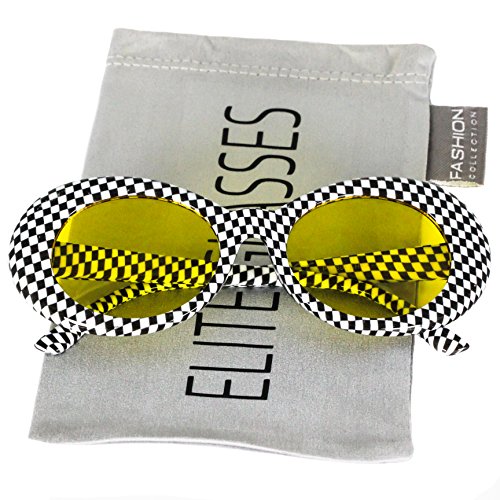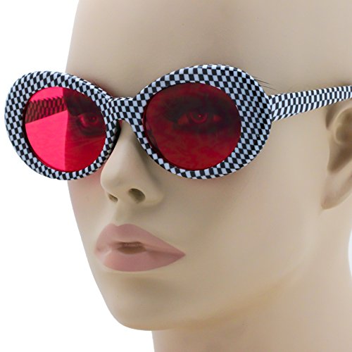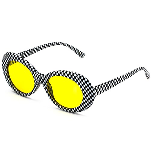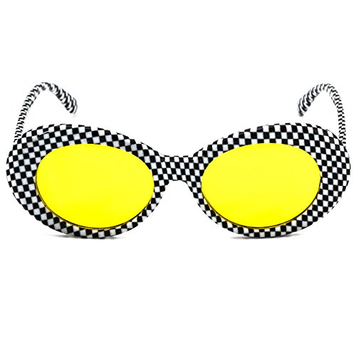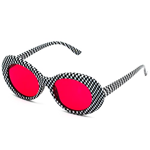 | Elite NIRVANA Kurt Cobain Oval Bold Vintage Sunglasses For Women Men Eyewear - Checkered Frame ... |