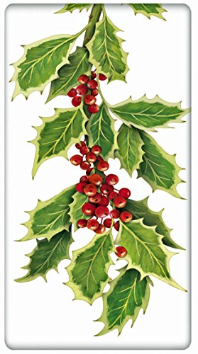 Variegated Holly Boughs 100% Cotton Flour Sack Dish Tea Towel - Mary Lake Thompson 30" x 30"