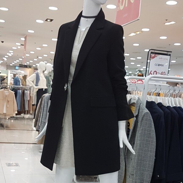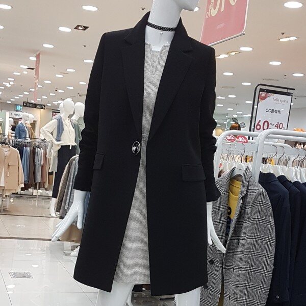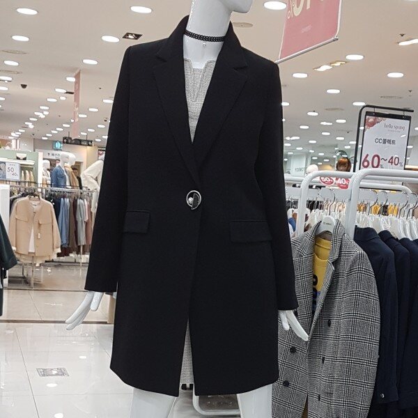 날씬기본핏에 깔끔블랙 재킷이네요?~떨어지는핏이 넘~이뻐용기본블랙컬러에 활용좋으시구요적당한 기장은 부담없게 연출좋으실듯해용여밈장식디테일이 포인트죠^^