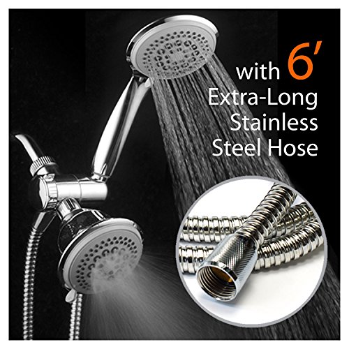 DreamSpa 36-Setting Luxury 3 Way Shower Head / Handheld Shower Combo with Extra Long 6 foot Stainless Steel Hose. Use two Showers Heads separately or together for a choice of 36 water flow patterns