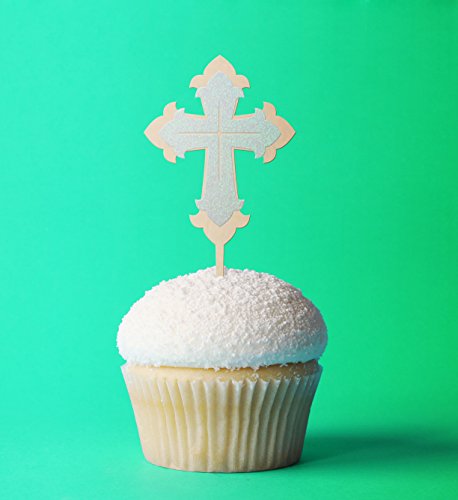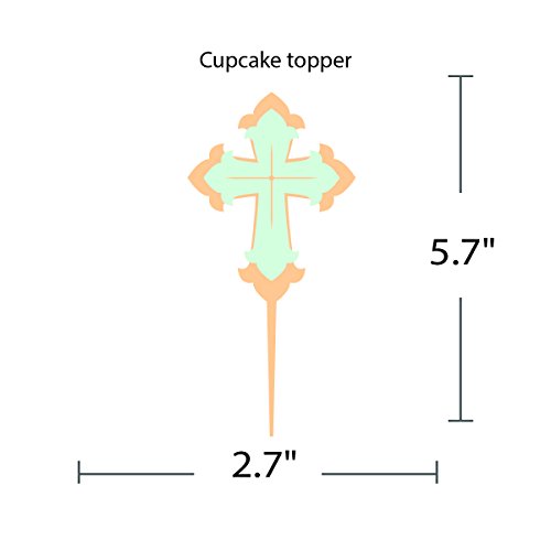 Cup Cake Topper Cross Baptism,Communion 2.7 X 5.7 Inches Laser Cut MDF and Glitter Foamy White Set 3 Pc