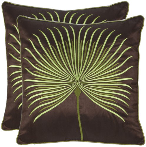 Add a fresh accent to your room with the Safavieh Pillow Collection Dandelion 18-Inch Brown and Green Pillows. An exotic tropical leaf fans across this brown satin polyester pillow, each vein appliqued with embroidery. Coordinating green satin piping frames this stunning naturalist illustration. This richly detailed pillow is finished with teal satin piping. These stunning pillows come in a set of two and measure 22-Inch wide by 22-Inch tall.Feature