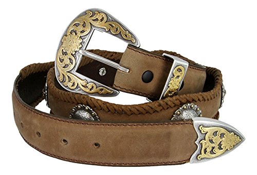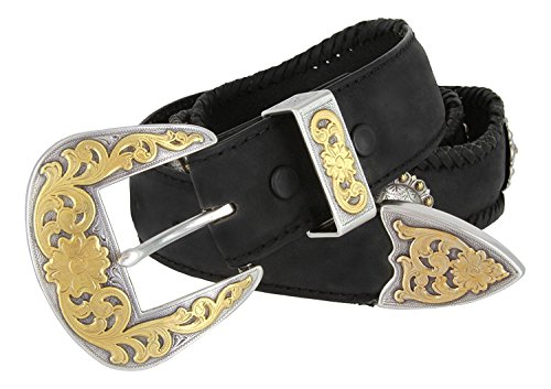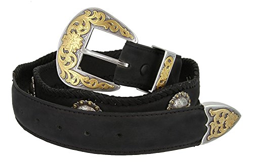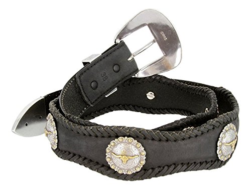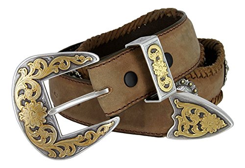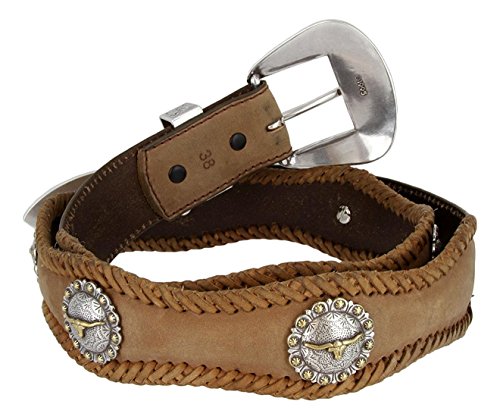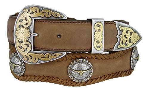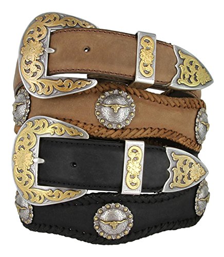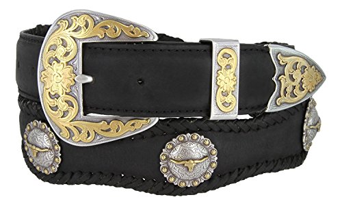 (Hagora)/Accessories/Belts Buckles/DIRECT FROM USA/Hagora Men 38 mm Wide Leather Silver Gold Longhorn Conchos Floral Buckle Belt