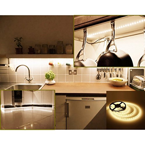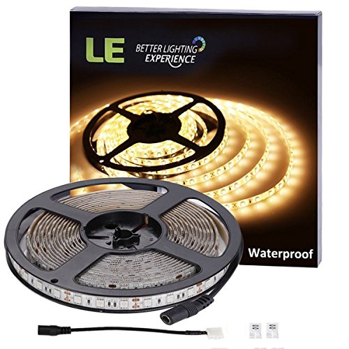 LE 16.4ft 300 Units SMD 5050 LED Flexible Light Strip, 3000K Warm White, 12V, Waterproof, Outdoor Indoor Home Garden Kitchen Bar Party Christmas Holiday Festival Celebration Decoration