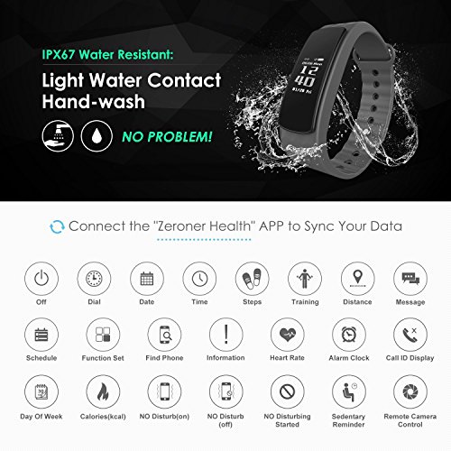 - Sleep Quality Monitor: Connect this fitness watch with app “ZERONER HEALTH” in your smart phone or tablet via Bluetooth, data will be transmitted to the App. It can monitor your sleep quality at night and your sleep quality data including sleep scores, deep sleep hours, awake hours, etc will display on your phone.
