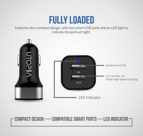 Super Compact Design Utopia Home's car charger are super compact size wise along with being slim and sleek by design. This all means that you can carry it around with quite ease. It is ideal for people who are always on the road. High Compatibility Utopia Home's car charger are high-speed charging and compatible with almost every smartphone and tablet including iPhones and Android phones with a USB charging. It supports Qualcomm Quick Charging which charges your device quicker than with the usual charging devices. Integrated Safety System Utopia Home's car charger has a built-in safety system which allows for protection against short-circuit, over-heating, over-current and over-charging. Important Notes - Always use your original cable, avoid using uncertified cables - If a port is not working correctly, it is probably because the protective internal switch was triggered. Now, you must unplug all the devices and try again after 5 minutes. 0 |