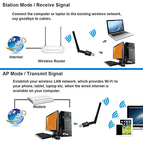 【Works with Any WiFi Routers】: By using this wireless network adapter, you can upgrade your Desktop, Laptop, PC to work with the latest dual band router for faster speed and extended range.