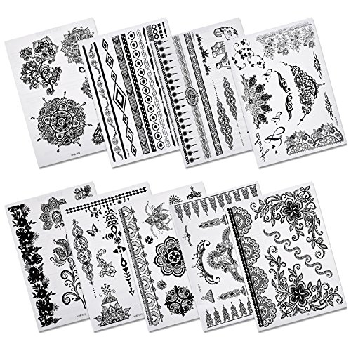 Features: Non-toxic and safe Durable surface Easy to apply, transfer and remove without any glue. Including feathers, maple leaves, necklaces, bracelets, flowers, butterfly and so on. Quantity: 9 sheets