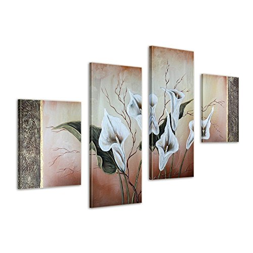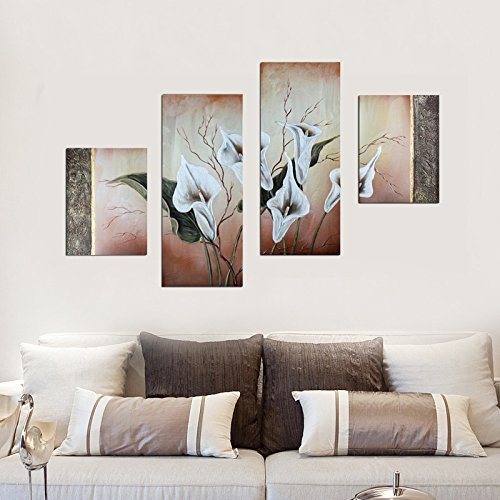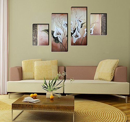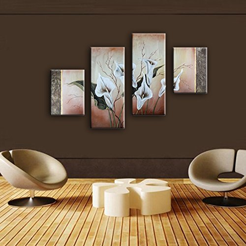 -. Title : Noah Art-Contemporary Oil Paintings of Flowers, White Lilies Flower Pictures 100% Hand Painted Framed Flower Paintings on Canvas, 4 Panel Gallery Wrapped Canvas Floral Wall Art for Bedroom Home Decor