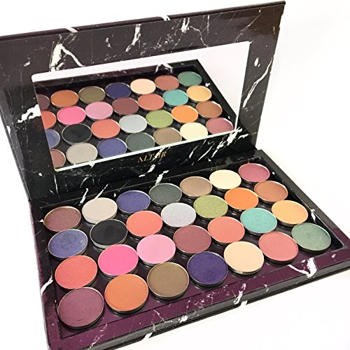 Exclusive Altair Beauty empty magnetic palette for depotting eyeshadows, blushes, highlighters, and more. Custom makeup storage palette with mirror + 10 free magnetic stickers. Fits: 28 standard sized 26mm eyeshadow pans, 15 large 36mm pans ***Eyeshadows NOT included. For demonstration purposes only.***