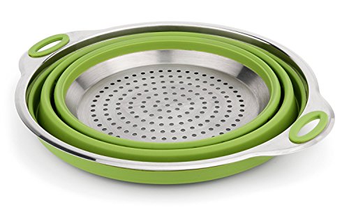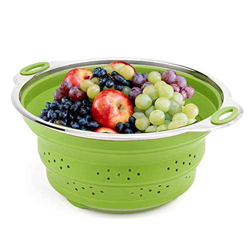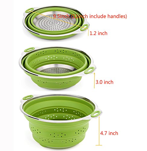 iNeibo Large Capacity Collapsible Silicone Colander/Strainer/Steamer with Stainless Steel Base Heat Resistant (Green)