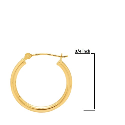 Great for every day wear 14K yellow gold 3/4 inch hoop earrings. The earrings are 2mm wide