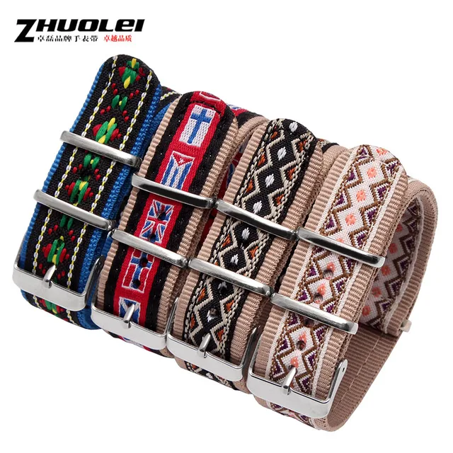 | [해외] 새로운 스타일의 20 미리메터 나일론 중국 바람 국가 바람 손목 시계 여성 남성 클래식 나토 시계 스트랩 손목 스트랩 |