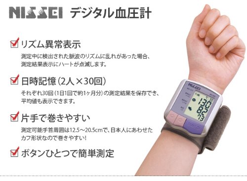 Around the wrist: 12.5cm ~ 20.5cm ● Weight: 107g ● Material: Body: ABS resin / cuff: nylon ● Accessories: instruction manual, package insert, carrying case, two AAA alkaline batteries ● Power supply: AAA batteries
