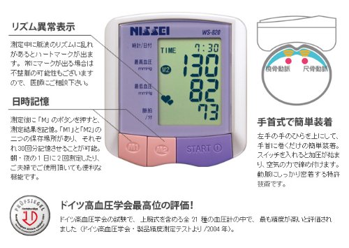 ● Results of top grades in the clinical trial of the German Hypertension Association ● Adopted "M cuff" which is also patented technology ● ● accurately holds the artery of the wrist in the form of M, UP measuring precision ● Memory: 30 times × 2 people