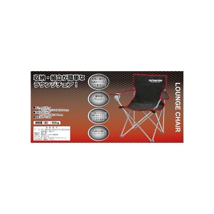 원본상품명: キャプテンスタッグ アウトドアチェア ジュ?ル ラウンジチェア M-3846 ドリンクホルダ?付き ブラック