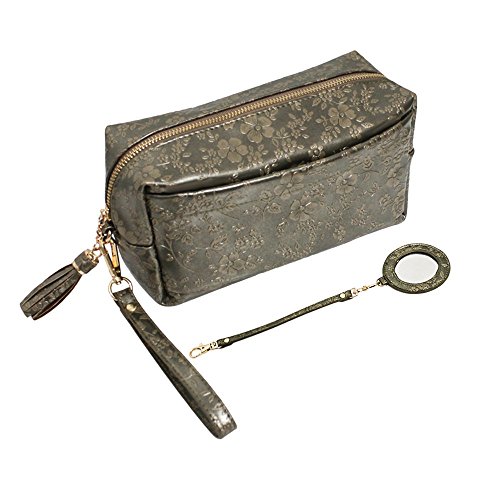 Wanmo Bag PU Leather Cosmetic Makeup Case Bag Portable Travel Toiletry Bag with Clutch Handle & Mirror for Women