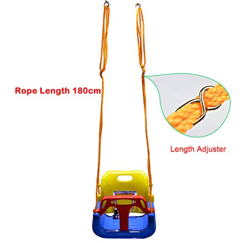 Safe: The front guard and eventually the back (which has a safety belt attached) ensure your child safer. Adding a additional device for fixing ropes on the back to make sure the swing no twisting, tipping, or rolling.