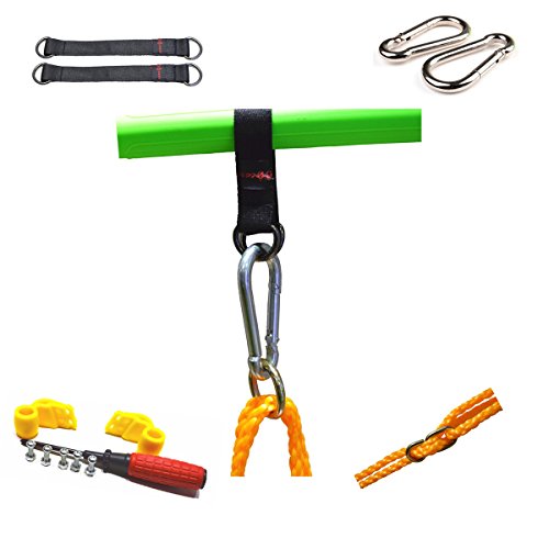 Convenience: It includes extra straps and snap hooks so that you could use it on a tree branch or a sturdy place to hang and hook the swing. The swing is well made and easy to put together.
