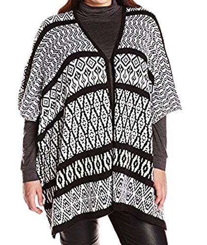 NY Collection Women's Plus-Size Elbow Sleeve Jacquard Poncho Like Pullover