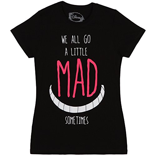 Alice in Wonderland We All Go a Little Mad Sometimes Juniors T-Shirt - Black (Medium)
